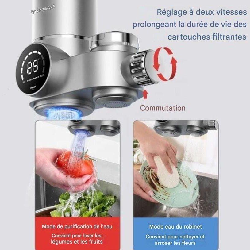 - Filtration multi-étapes : Élimine sédiments, chlore et calcaire